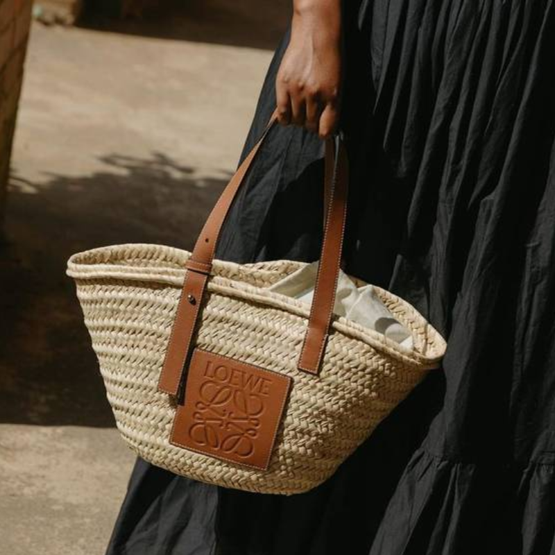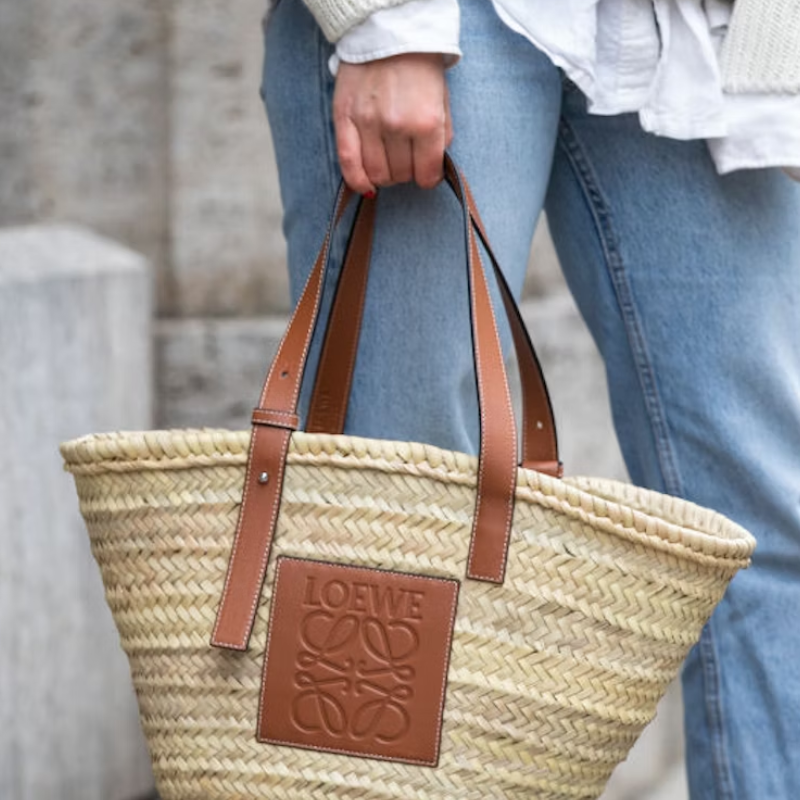 El capazo es un bolso tradicional realzado con un cuerpo clásico tejido a mano y asas superiores en piel de ternera. Esta versión mediana está confeccionada en España con hojas de rafia que se han cultivado, cosechado, secado al sol y tejido a mano.